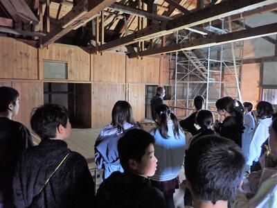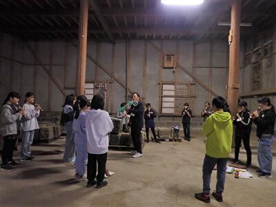 高い天井の蔵は響きがとてもよく、みんなでリコーダー演奏をしてみました。