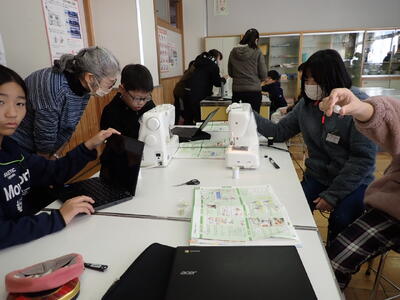 学習しています。今日は、ボランティアの方にお手伝いを頂き、ボビンの巻き方を