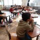 食堂では、フォグマシーンを使って空気の流れを見られるようにしました。