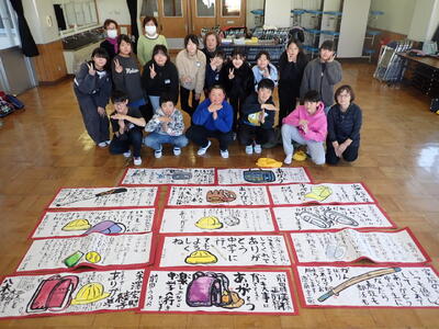絵手紙の指導の方にきていただき、卒業に向けて絵手紙作りをしました。