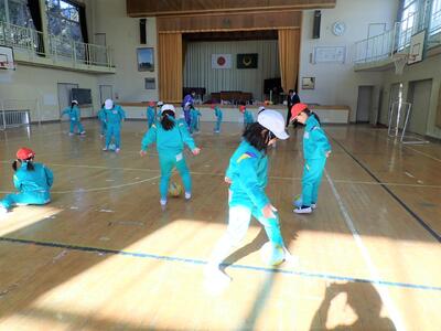 2・3校時を使って、ブロックごとに行いました。蹴るだけでなく投げたり渡したりして