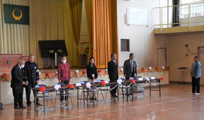 児童からの感謝のメッセージとお花を贈りました。今年は、5・6年生が歌の