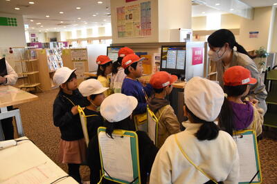 大田原図書館を初めに見学しました。学校の図書室よりも広くてたくさんの本がある