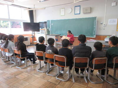 読み聞かせボランティアの方と職員が行いました。読書週間は終わりましたが