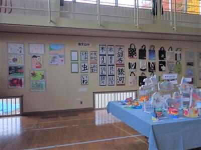 日曜日(16日)は、佐久山産業文化祭です。子供たちの作品が飾られています。