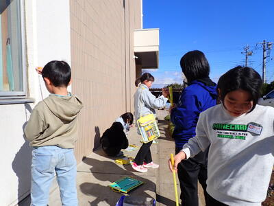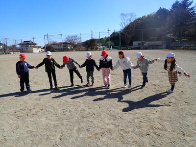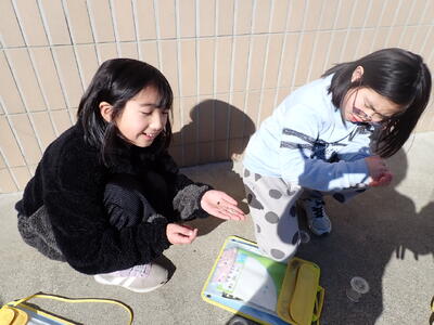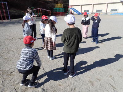 陰遊びをしました。かげ送りやかげ踏み、かげで形をつくってもいました。