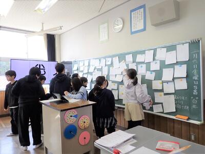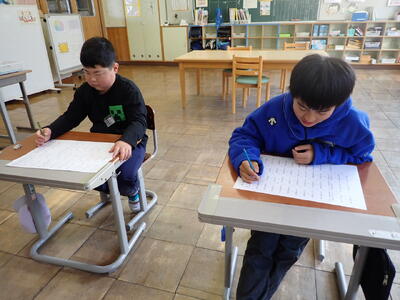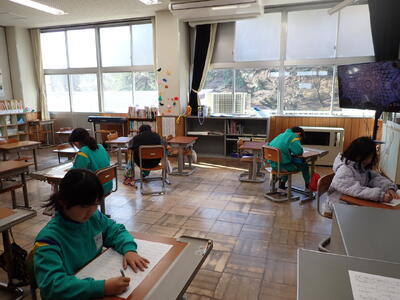4・5年生が合同で、漢字づくりに挑戦していました。イメージした漢字に