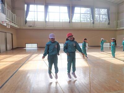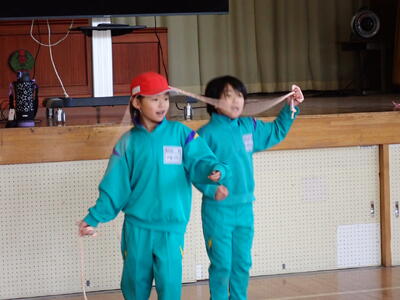 1・2年生の体育は、短縄と長縄でした。短縄で2人跳びも上手にできる