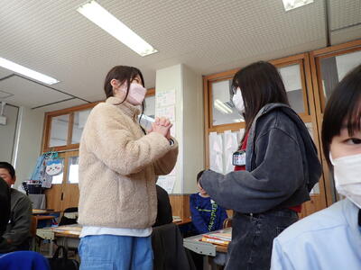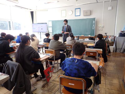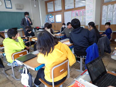 親園中学校の英語の先生が、6年生の乗り入れ授業に来てくださいました。