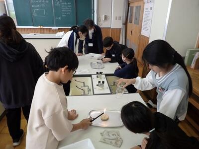 6年生は理科。燃焼に酸素が必要なことを、実験で確認しています。