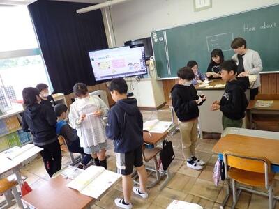 5年生は英語。ペアを組んで、好きなことと苦手なことを紹介し合っています。