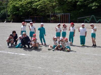 3・4年生は体育。さっき80メートルのタイム走が終わったばかりだそうです。みんなやりきった顔をしています!
